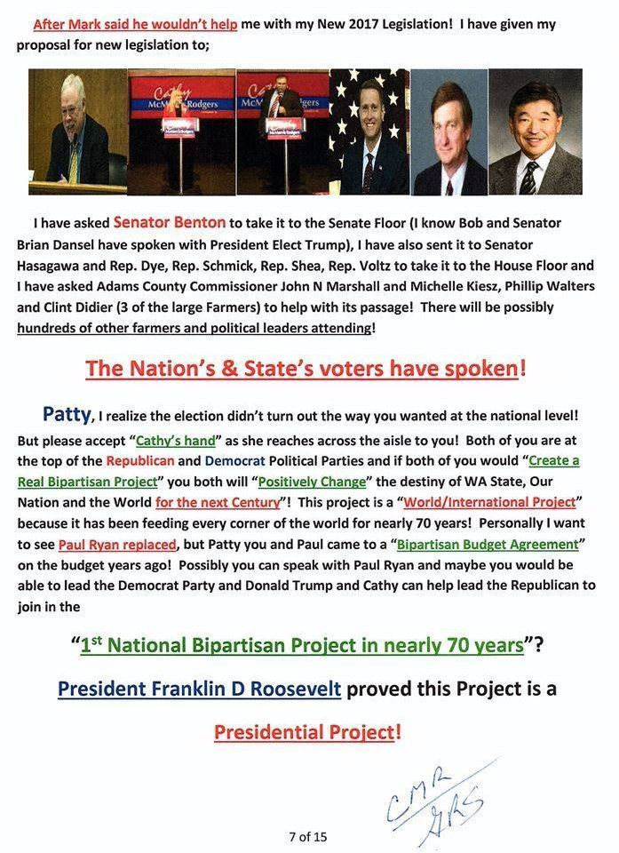 New Bipartisan Funding Offer to Congresswoman Cathy McMorris Rodgers